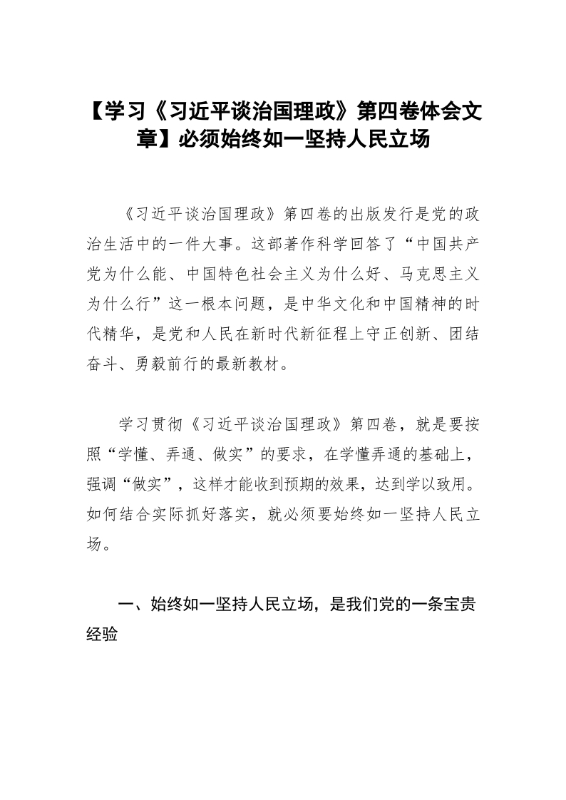 / 【学习《习近平谈治国理政》第四卷体会文章】必须始终如一坚持人民立场