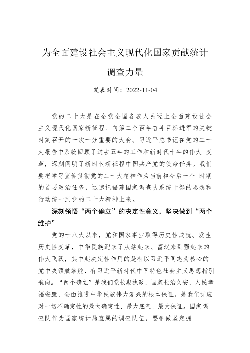 / 为全面建设社会主义现代化国家贡献统计调查力量