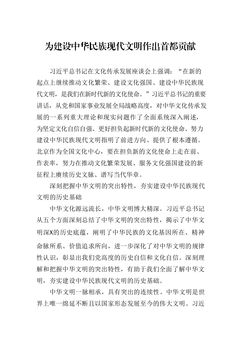 / 为建设中华民族现代文明作出首都贡献