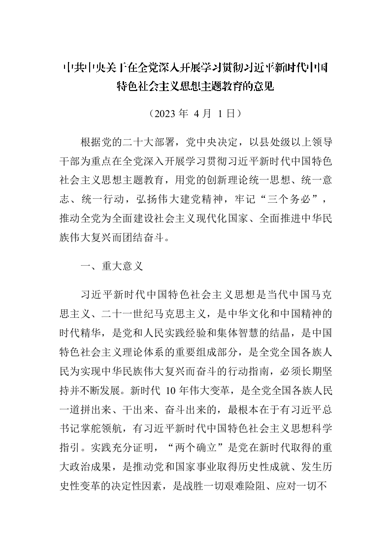 / 主题教育∣顶层文件:中共中央关于在全党深入开展学习贯彻习近平新时代中国特色社会主义思想主题教育的意见