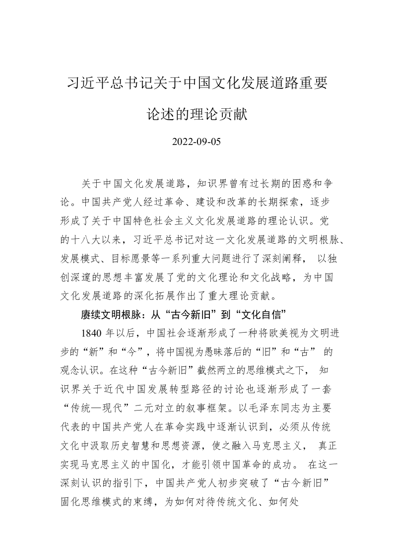 / 习近平总书记关于中国文化发展道路重要论述的理论贡献