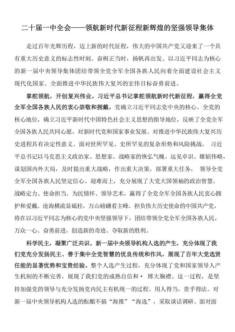二十届一中全会——领航新时代新征程新辉煌的坚强领导集体