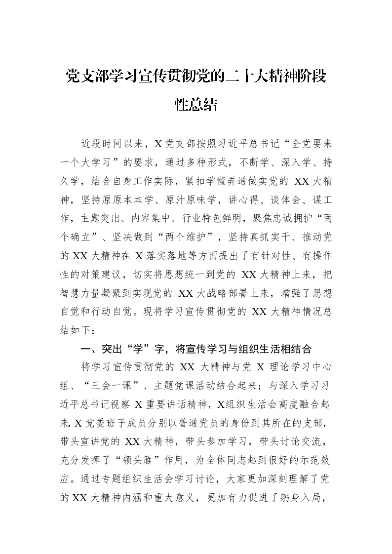 党支部学习宣传贯彻党的二十大精神阶段性总结