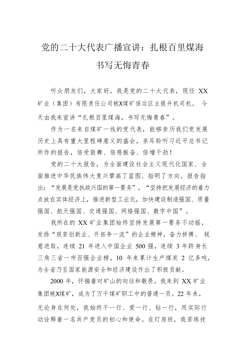 / 党的二十大代表广播宣讲:扎根百里煤海 书写无悔青春(20221212)