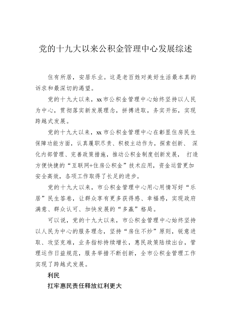 / 党的十九大以来公积金管理中心发展综述