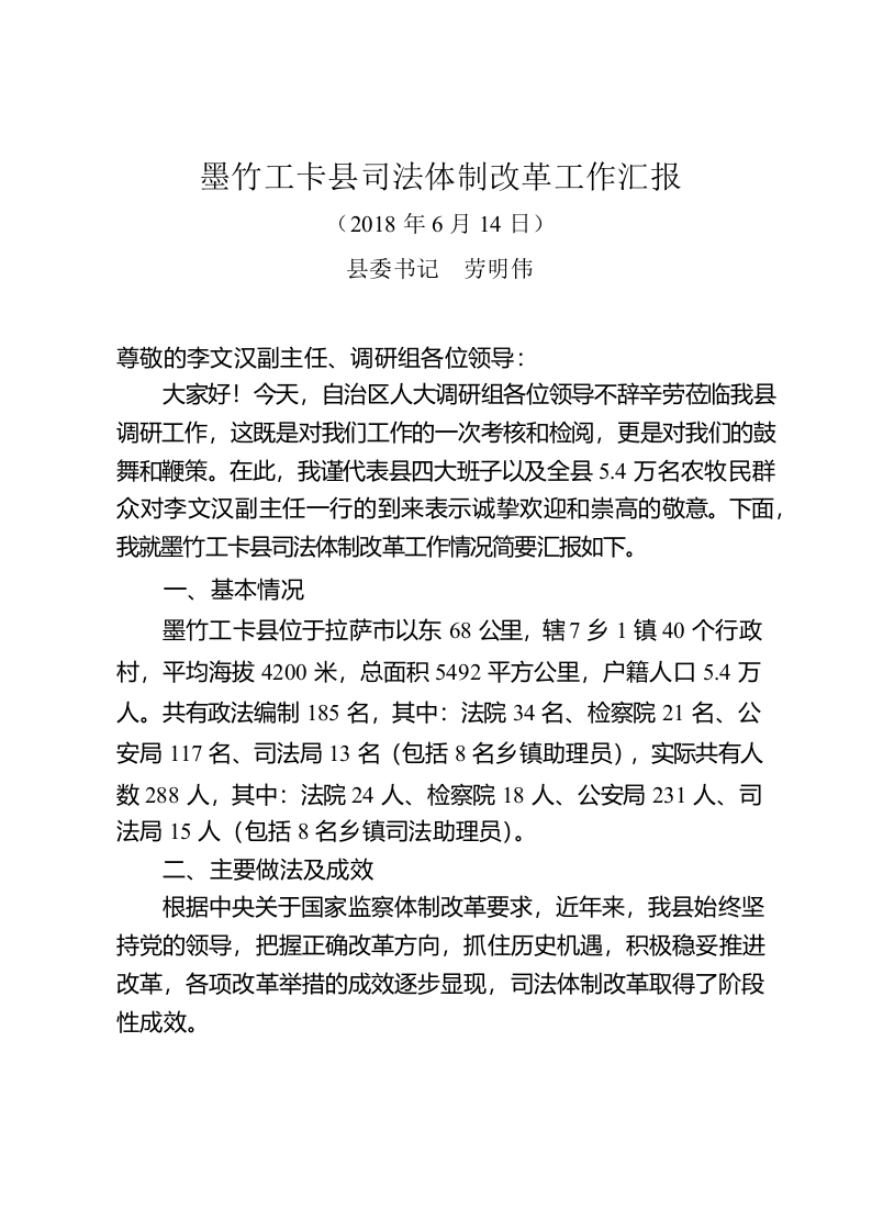 / 全县司法体制改革汇报材料