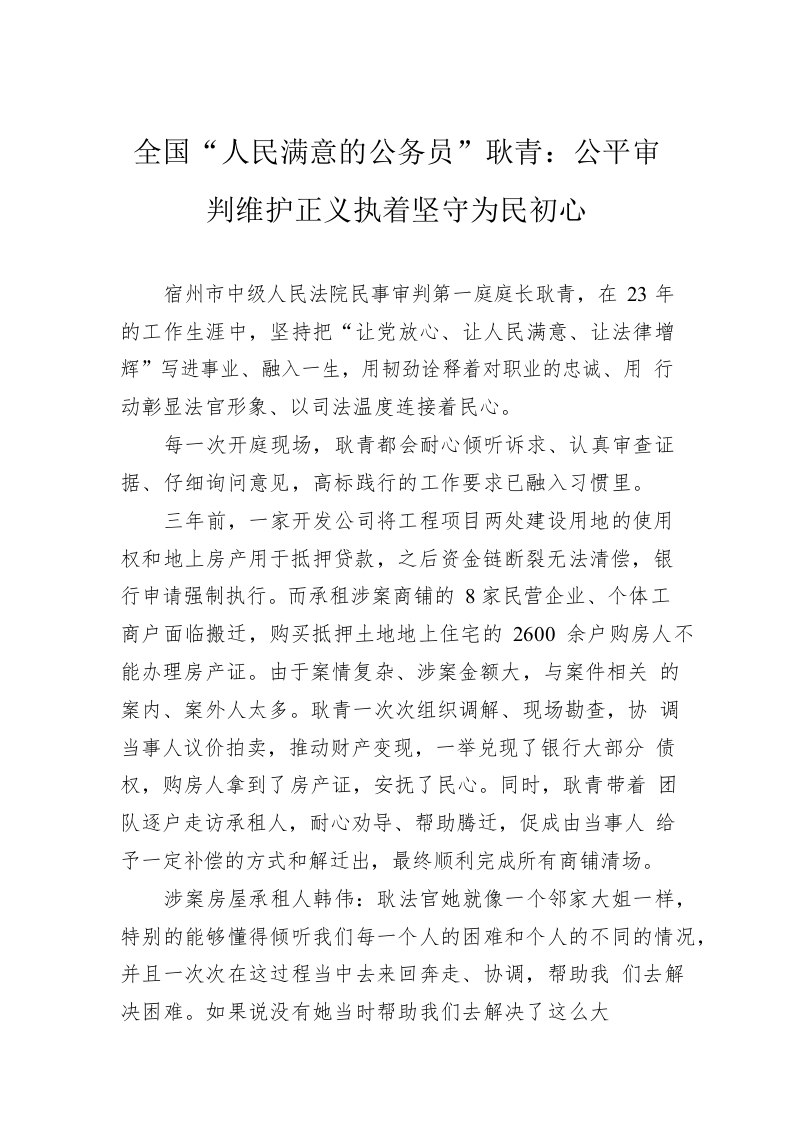 / 全国“人民满意的公务员”耿青:公平审判维护正义执着坚守为民初心(20221011)