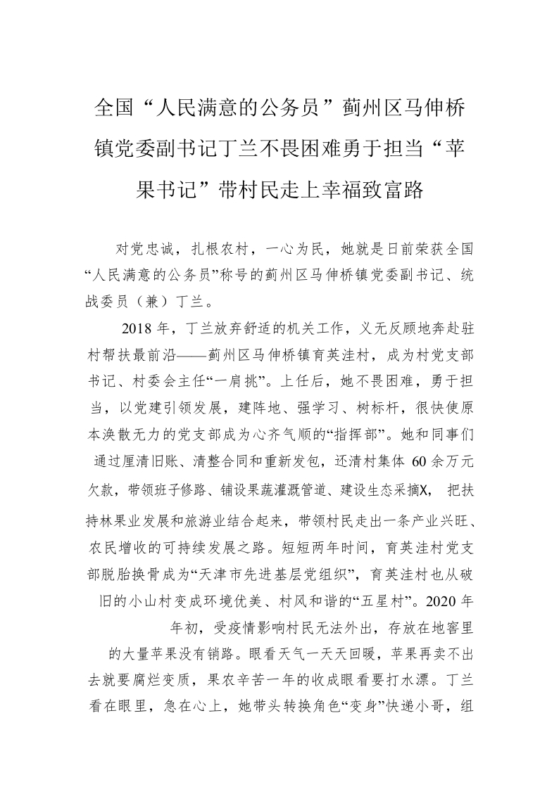 / 全国“人民满意的公务员”蓟州区马伸桥镇党委副书记丁兰不畏困难勇于担当“苹果书记”带村民走上幸福致富路(20220906)