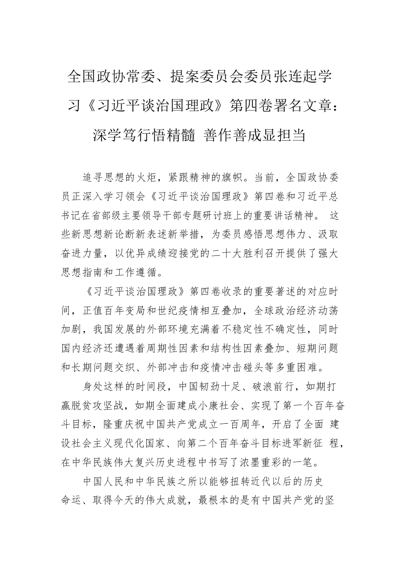 全国政协常委、提案委员会委员张连起学习《习近平谈治国理政》第四卷署名文章:深学笃行悟精髓 善作善成显担当(20220823)