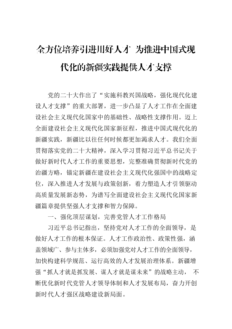 / 全方位培养引进用好人才 为推进中国式现代化的新疆实践提供人才支撑