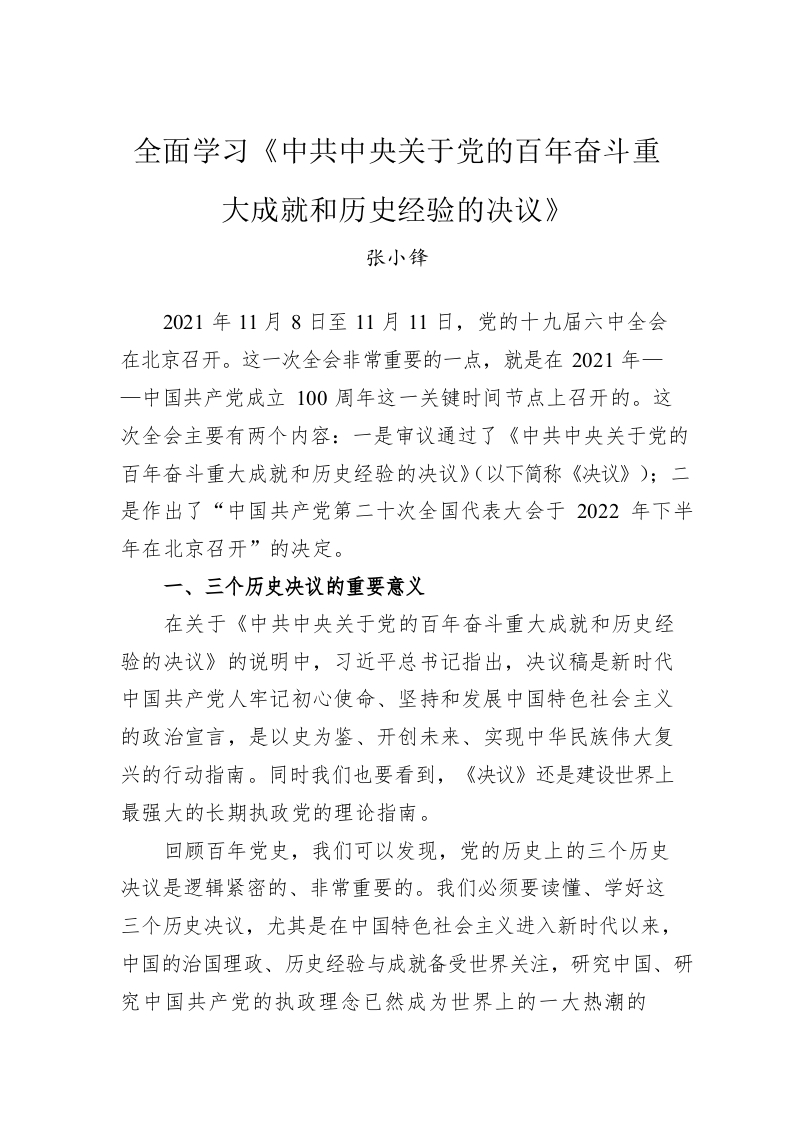 / 全面学习《中共中央关于党的百年奋斗重大成就和历史经验的决议》