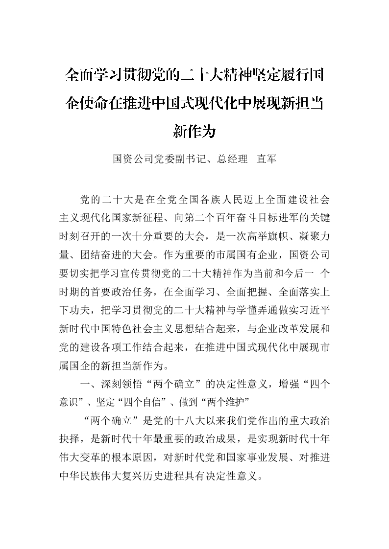 / 全面学习贯彻党的二十大精神坚定履行国企使命在推进中国式现代化中展现新担当新作为
