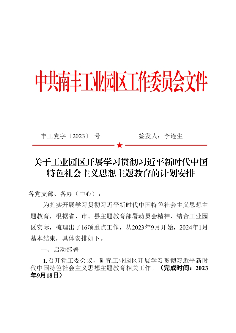 / 关于工业园区开展学习贯彻习近平新时代中国特色社会主义思想主题教育的计划安排
