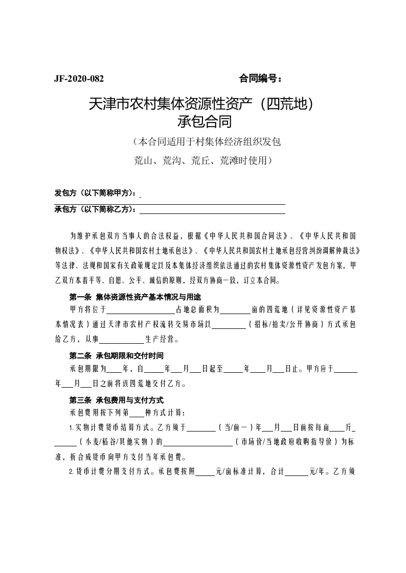 / 天津市农村集体资源性资产(四荒地)承包合同