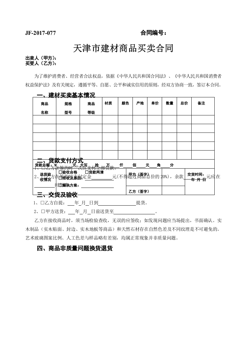 / 天津市建材商品买卖合同