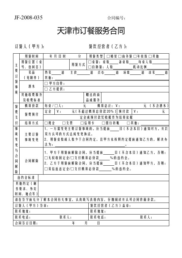 / 天津市订餐服务合同