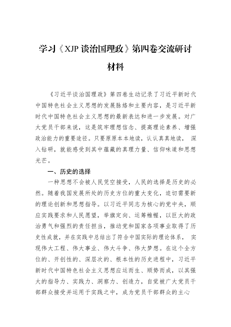 / 学习《谈治国理政》第四卷交流研讨材料