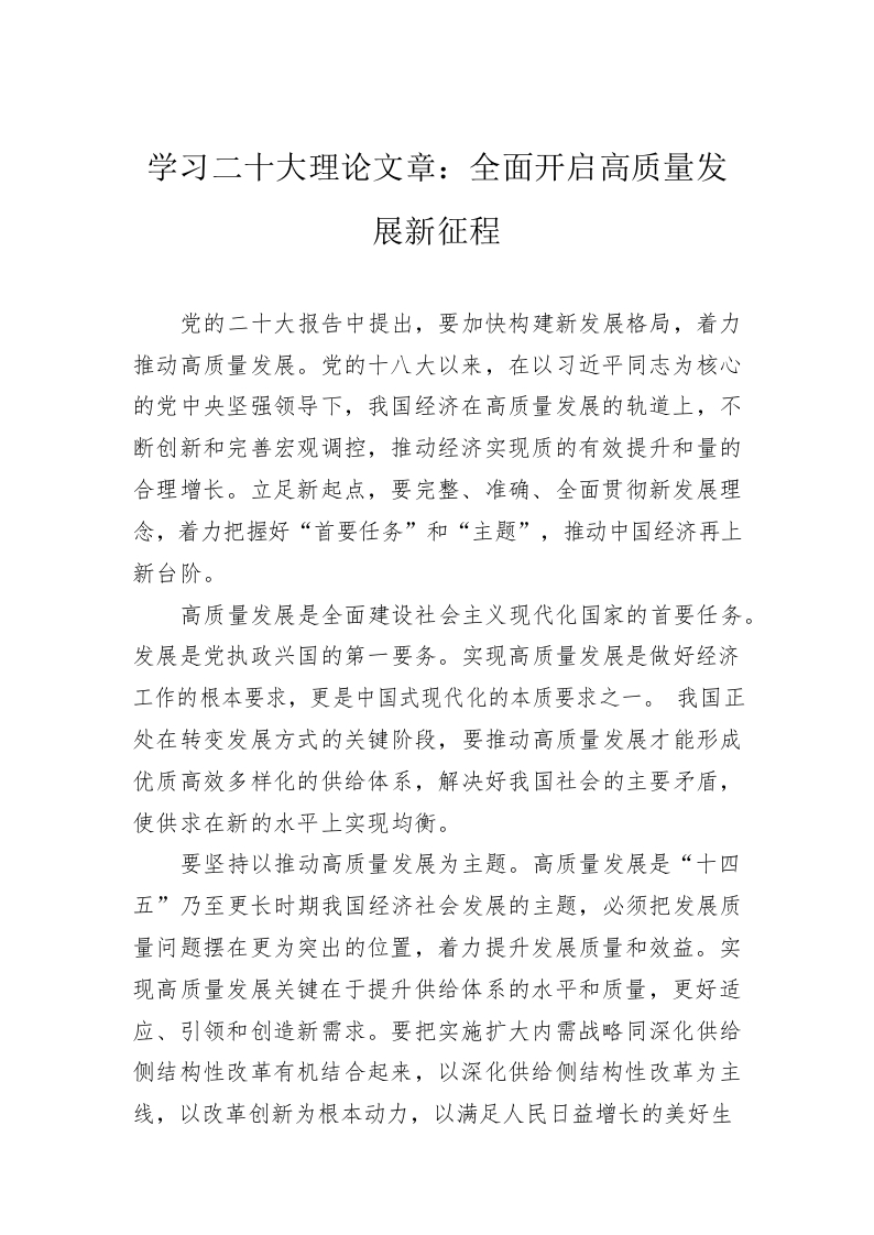 / 学习二十大理论文章:全面开启高质量发展新征程(20221225)