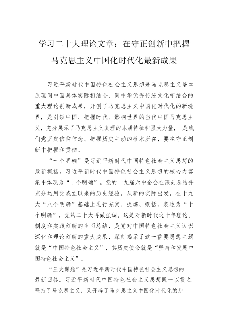 学习二十大理论文章:在守正创新中把握马克思主义中国化时代化最新成果(20221110)