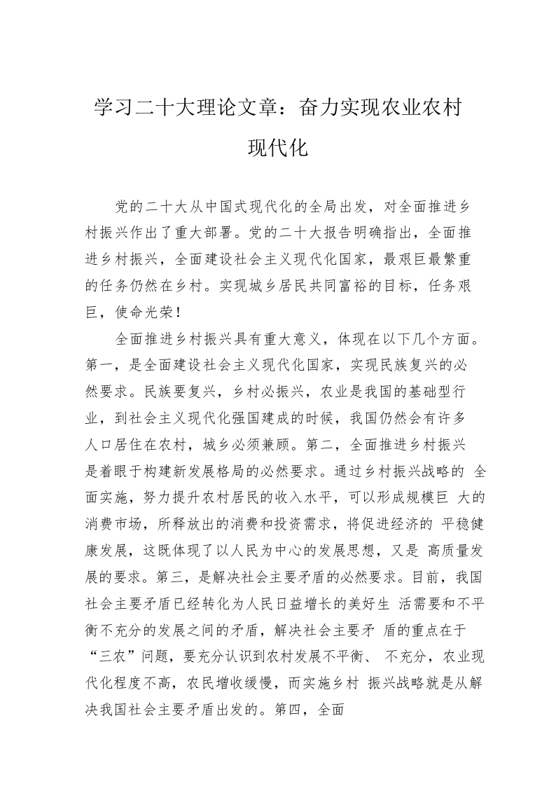 学习二十大理论文章:奋力实现农业农村现代化(20221110)