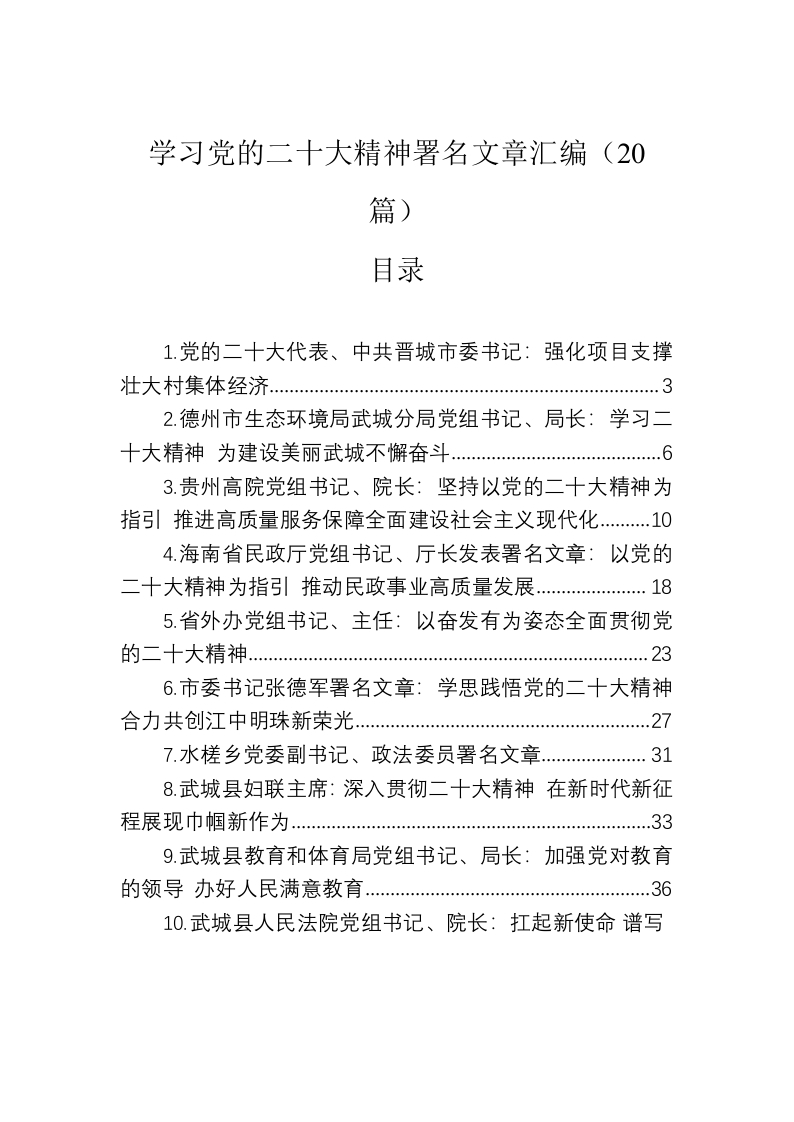 / 学习党的二十大精神署名文章汇编(20篇)