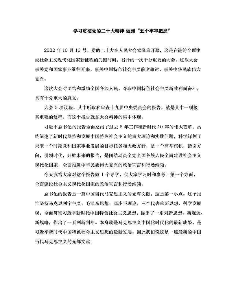 学习贯彻党的二十大精神 做到“五个牢牢把握”