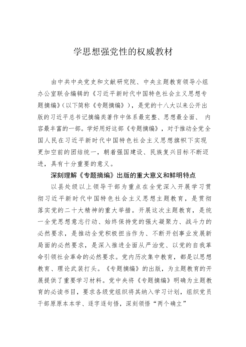 学思想强党性的权威教材
