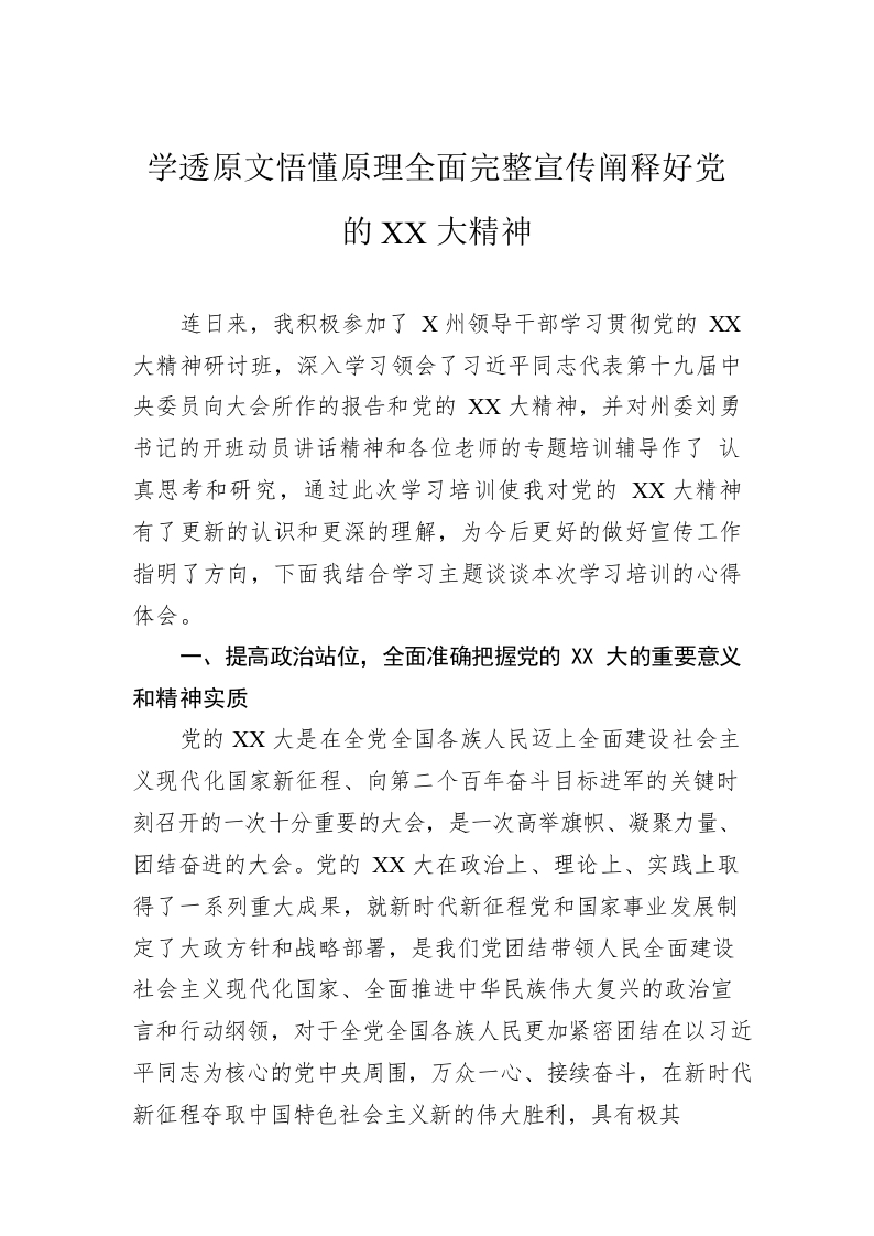 学透原文悟懂原理全面完整宣传阐释好党的XX大精神
