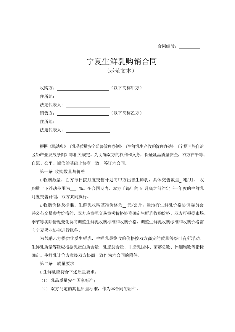 / 宁夏生鲜乳购销合同
