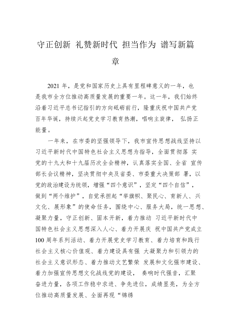 守正创新 礼赞新时代 担当作为 谱写新篇章(国庆节材料)