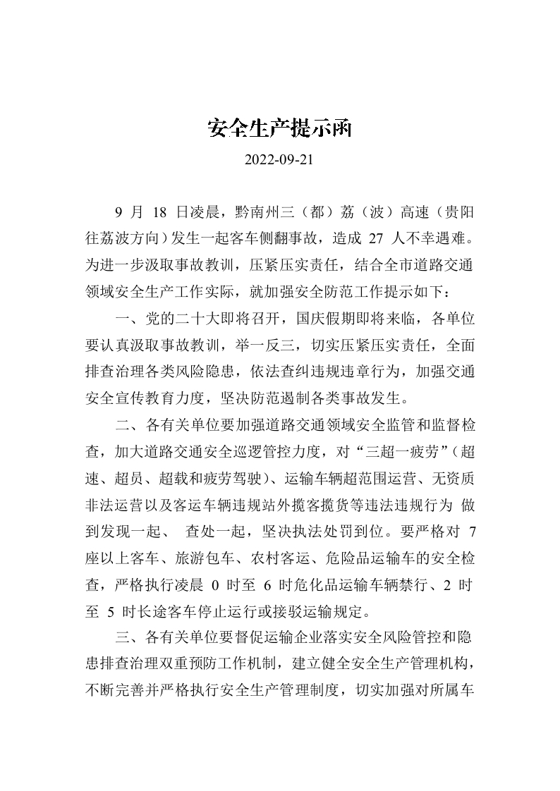 安全生产提示函