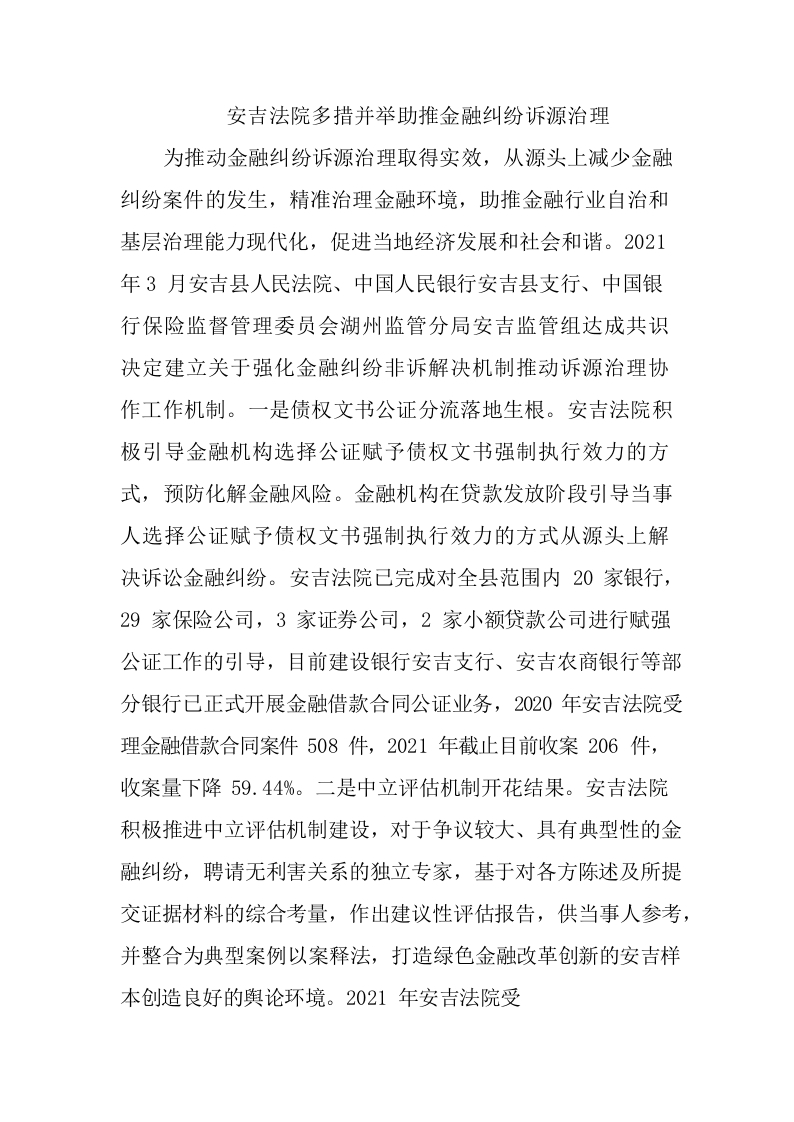 / 安吉法院多措并举助推金融纠纷诉源治理