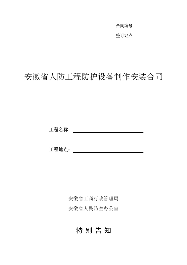 / 安徽省人防工程防护设备制作安装合同