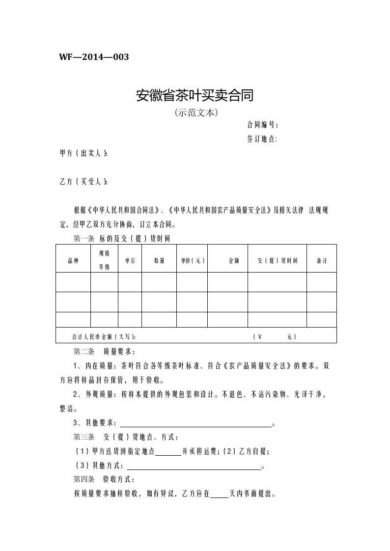 / 安徽省茶叶买卖合同