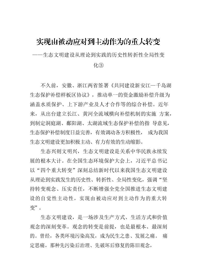 实现由被动应对到主动作为的重大转变——生态文明建设从理论到实践的历史性转折性全局性变化③