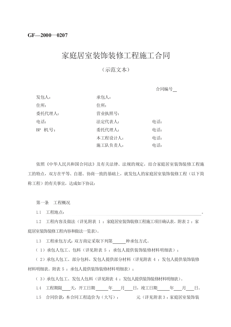 / 家庭居室装饰装修工程施工合同 GF—2000—0207