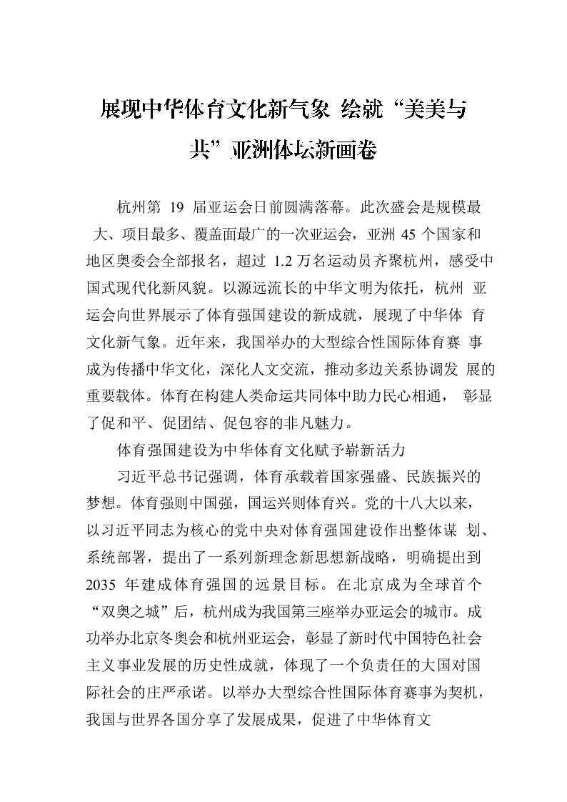 展现中华体育文化新气象 绘就“美美与共”亚洲体坛新画卷