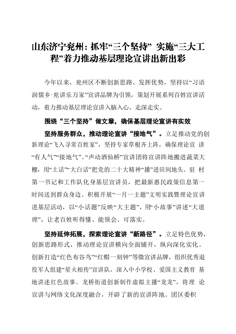 / 山东济宁兖州:抓牢“三个坚持” 实施“三大工程” 着力推动基层理论宣讲出新出彩