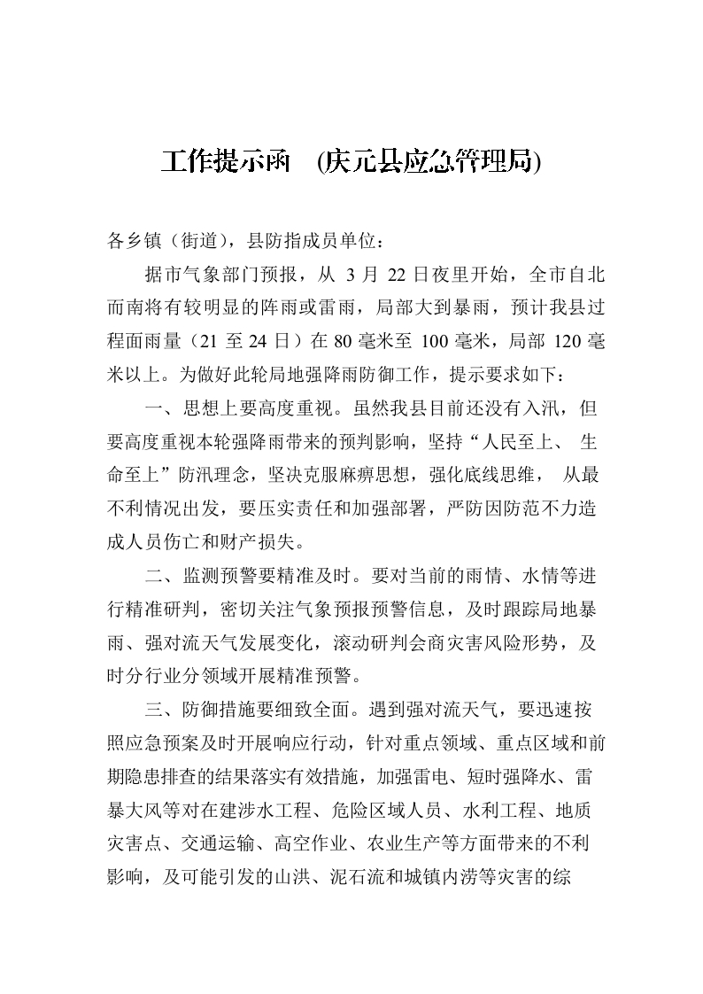/ 工作提示函 (庆元县应急管理局)