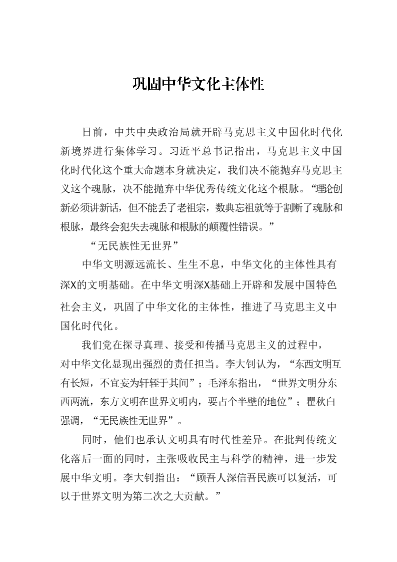 巩固中华文化主体性