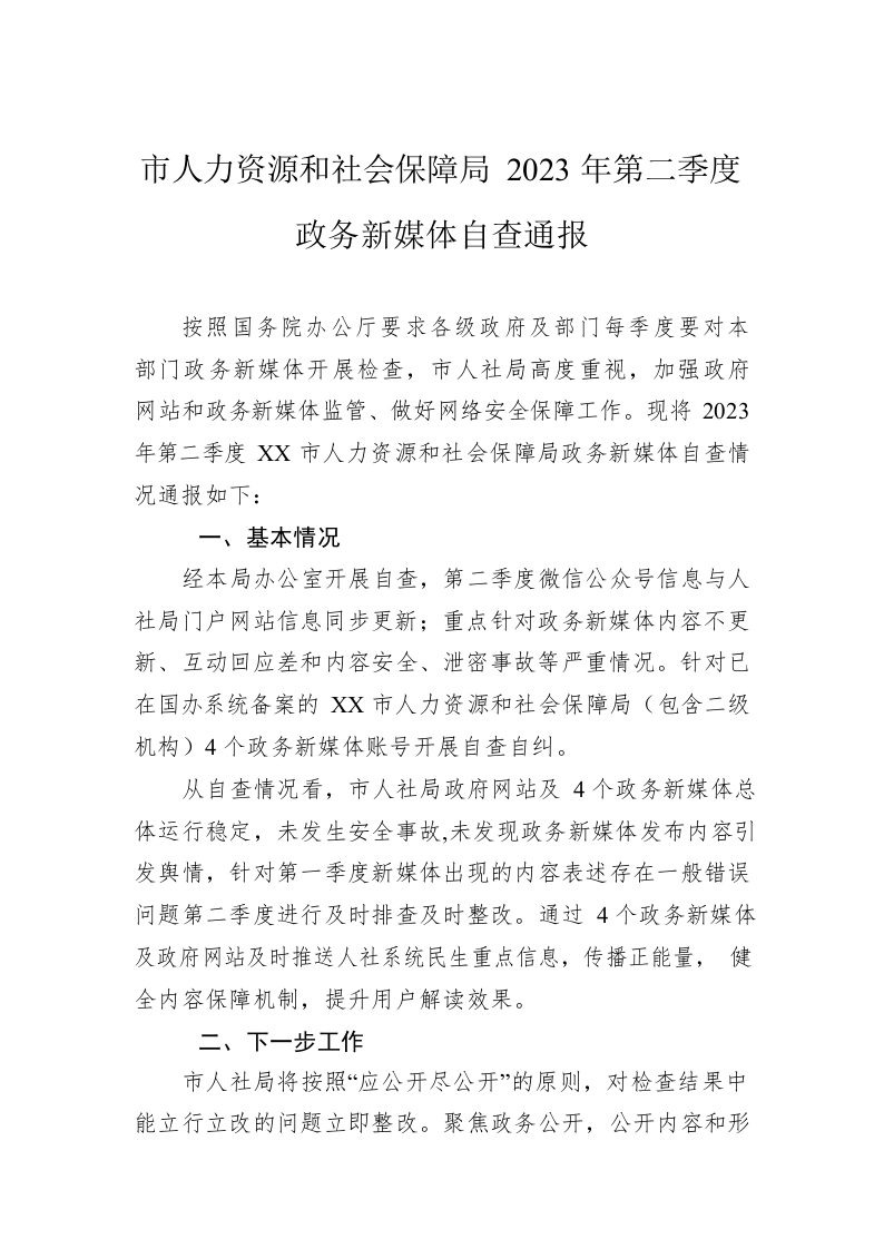 / 市人力资源和社会保障局2023年第二季度政务新媒体自查通报(20230512)