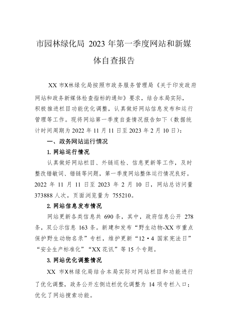 / 市园林绿化局2023年第一季度网站和新媒体自查报告(20230215)