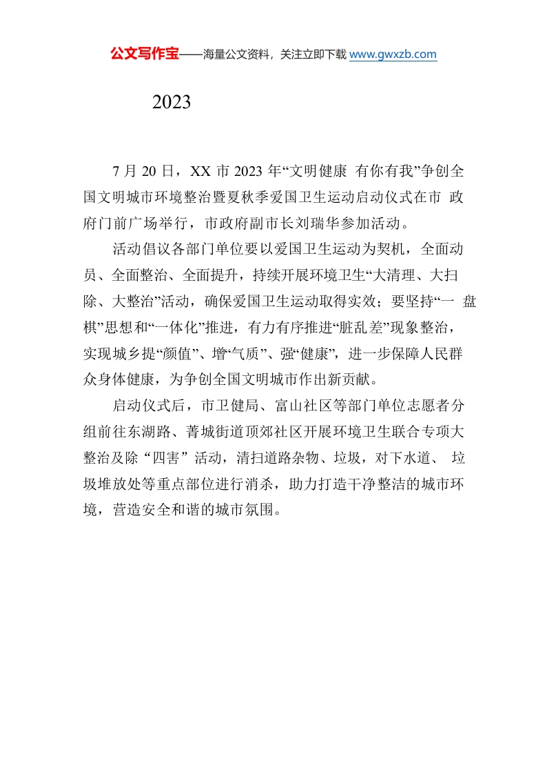 / 市开展2023年争创全国文明城市环境整治暨夏秋季爱国卫生运动(20230725)