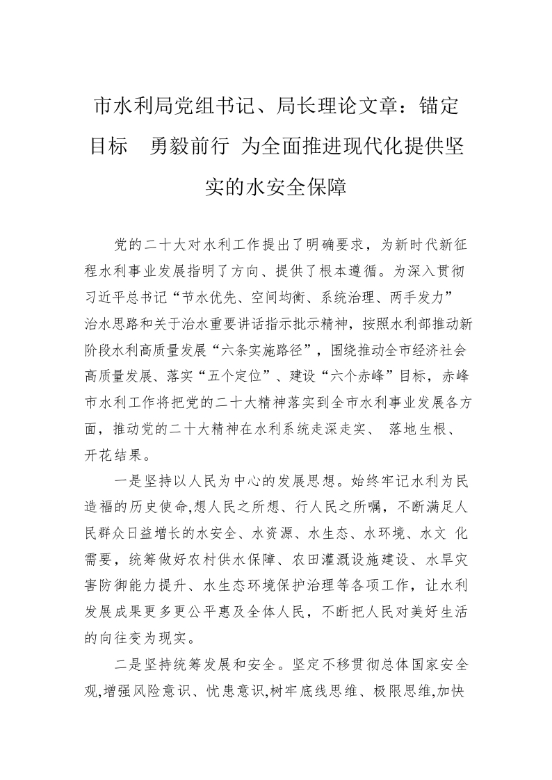 / 市水利局党组书记、局长理论文章:锚定目标 勇毅前行 为全面推进现代化提供坚实的水安全保障(20221214)