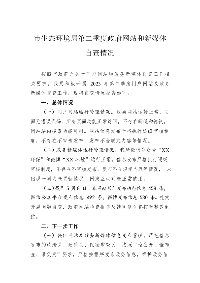 / 市生态环境局第二季度政府网站和新媒体自查情况(20230508)