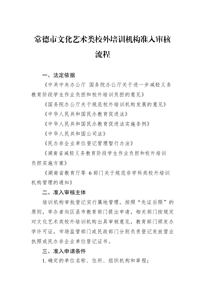 / 常德市文化艺术类校外培训机构准入审核流程