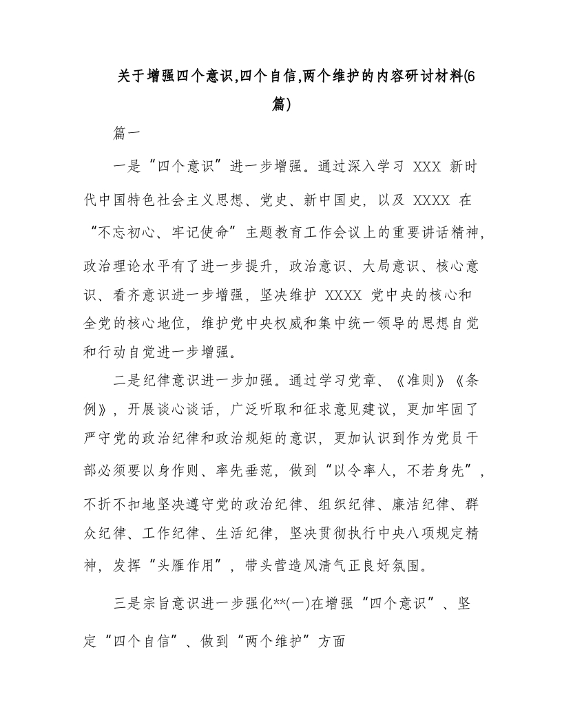 / 2023年关于增强四个意识,四个自信,两个维护的内容研讨材料(6篇)