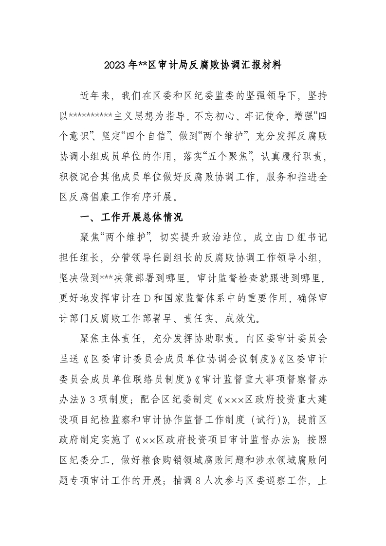 / 2023年区审计局反腐败协调汇报材料
