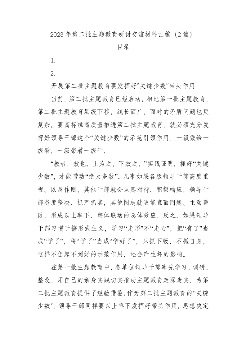 / 2023年第二批主题教育研讨交流材料汇编(2篇)
