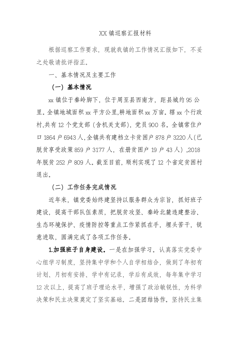 / XX镇巡察汇报材料